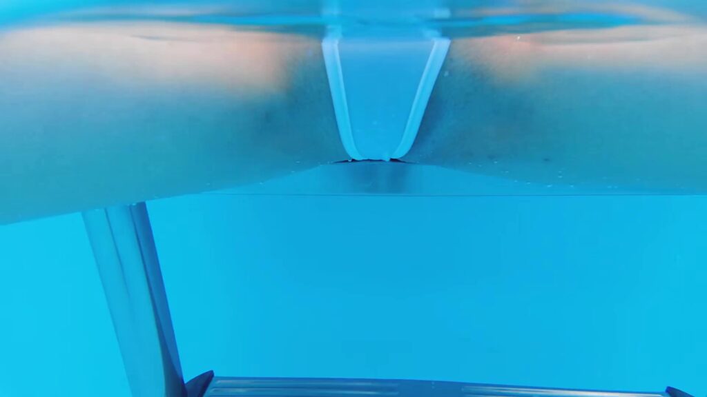そしてプールサイドに足をプールにいれて、股開き、水中からの眺め最高。